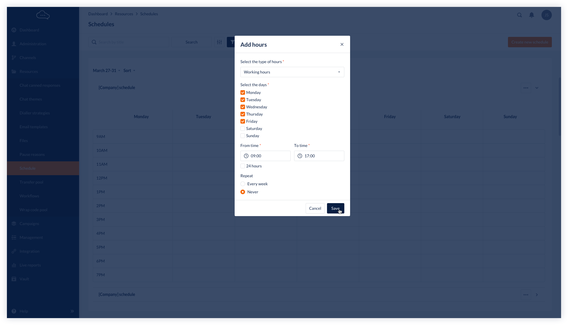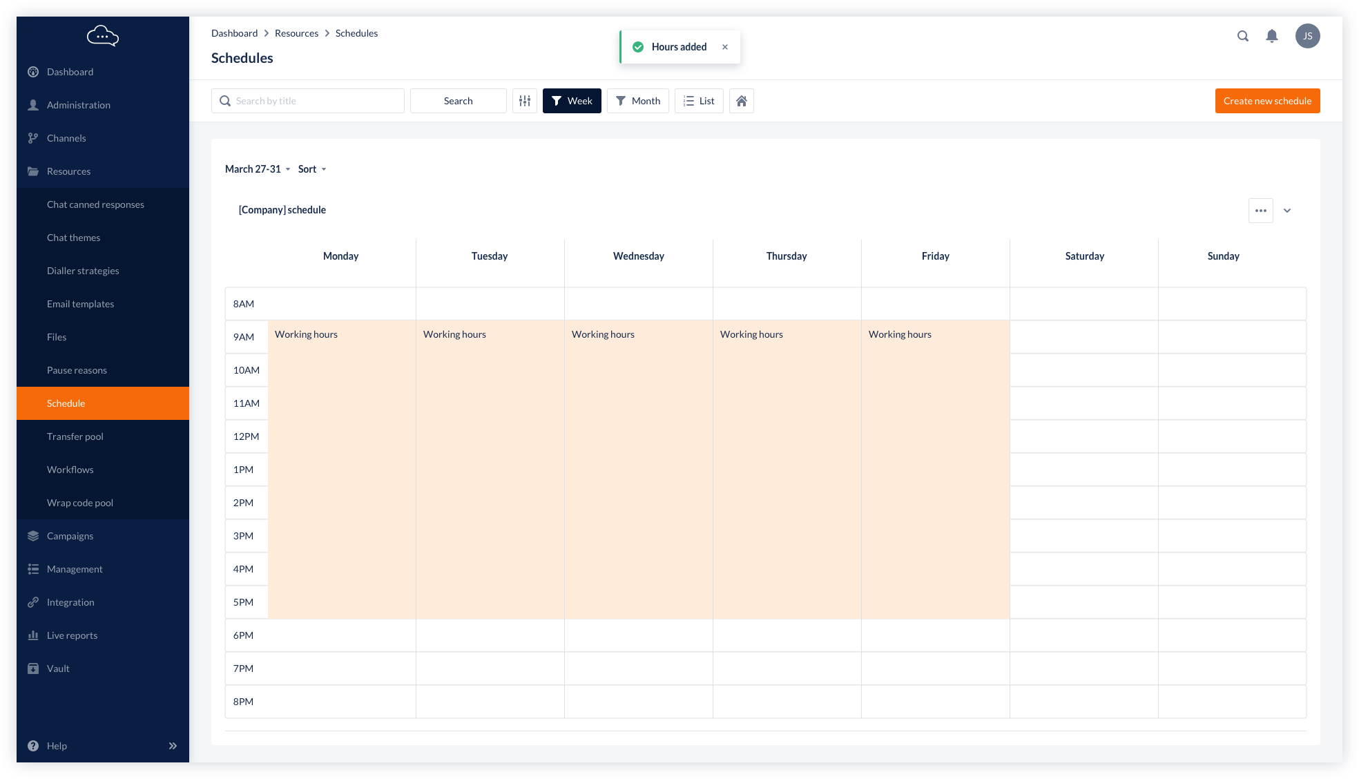 Redesigned the Schedule feature to allow users to set days/times, edit/delete entries, define repetitions, and filter by week/month.